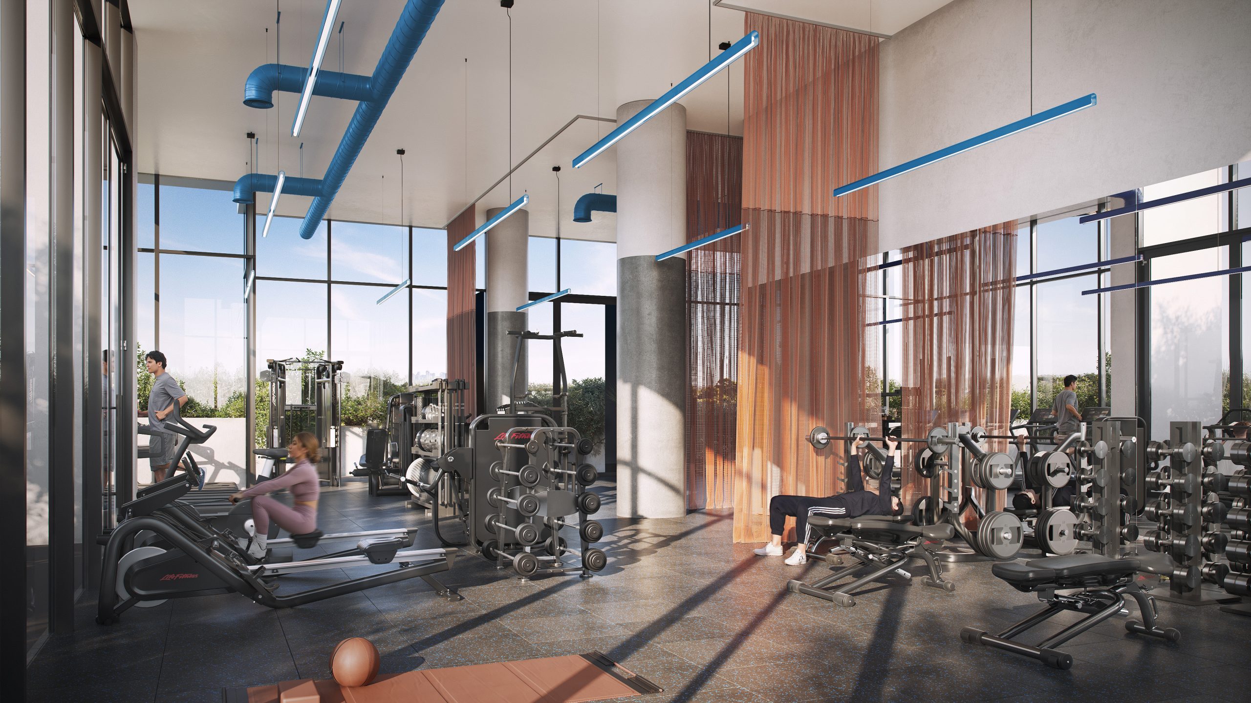 Indi residents will enjoy premium amenities including several private dining and entertaining rooms, a podcast/media room, a cocktail lounge located on level 42 with stunning city views, a multi-purpose room, and a co-working space featuring a meeting room and phone booths. Additionally, they have access to a fully-equipped gym, heated outdoor swimming pool and sauna, outdoor landscaped areas with BBQs and seating, a dog run and dog wash, and a games room.