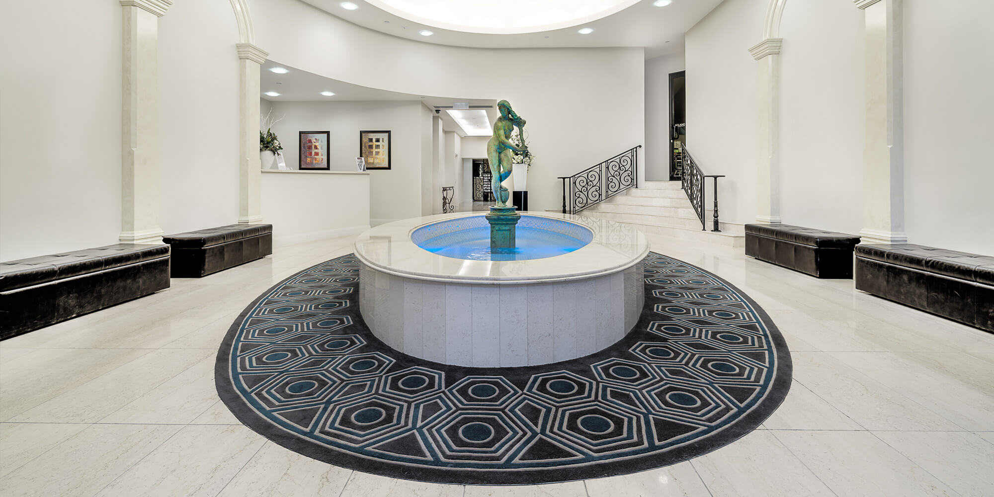Milano’s lobby evokes Italian majesty – complete with marble fountain centrepiece – and leads residents to new levels of elegance with marble columns, wrought iron detailing and decorative archways.