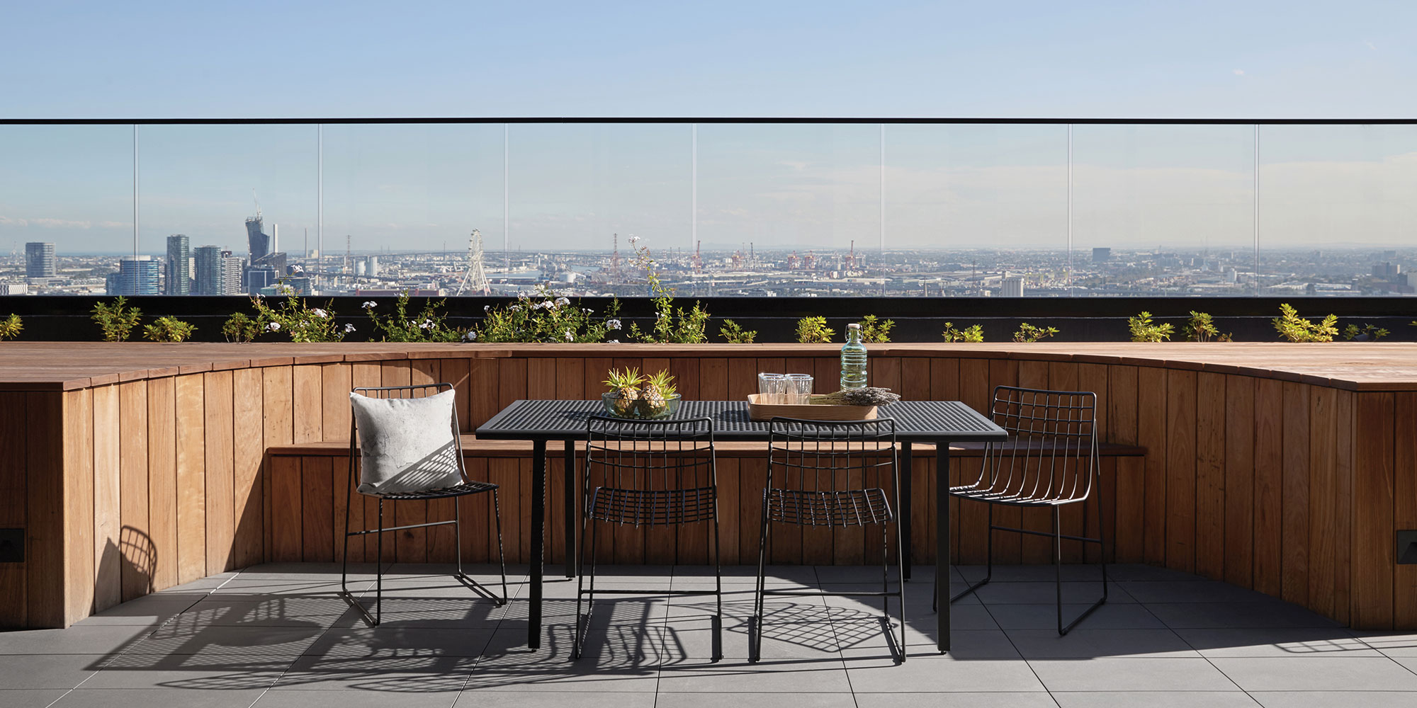 A full level of lifestyle amenities is located at the building’s canopy level and includes a large, fully equipped gym, a dining room with kitchen facilities and a casual lounge with feature fireplace. A large barbeque terrace with scalloped seating wraps the canopy’s edge, providing exquisite views of the city skyline.